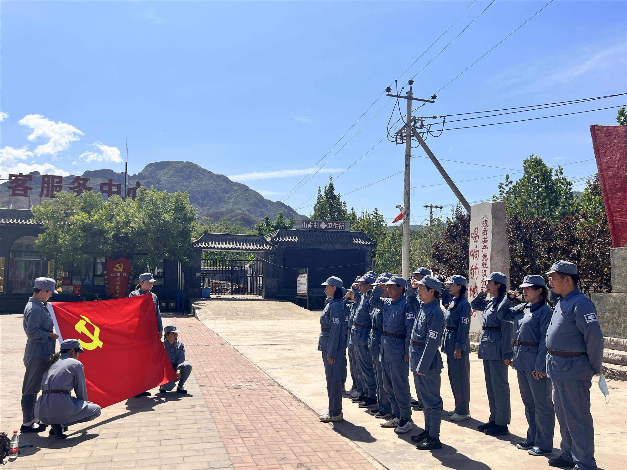 学院党委书记张露红在活动中强调,全院各党支部和广大党员要站在忠诚捍卫“两个确立”、坚决做到“两个维护”的政治高度,充分认识开展主题教育的重要意义,以高度的政治自觉、饱满的政治热情、严肃的政治态度,积极投身主题教育,努力在以学铸魂、以学增智、以学正风、以学促干方面取得实效。山南村党支部书记王春革细致生动的讲解了山南村红色历史,山南村是平西抗日根据地核心区,是中共冀热察区党委、挺进军司令部、挺进剧社、挺进军兵工厂所在地,《没有共产党就没有新中国》就在这里唱响,厚重的红色历史激励着一代又一代老区人民奋勇拼搏、砥砺前行。全体党员共同参观了革命旧址,观看了红色文化演出,在张露红带领下庄严重温入党誓词,激情合唱《没有共产党就没有新中国》,表达了对中国共产党的热爱,强化对红色文化的价值认同。