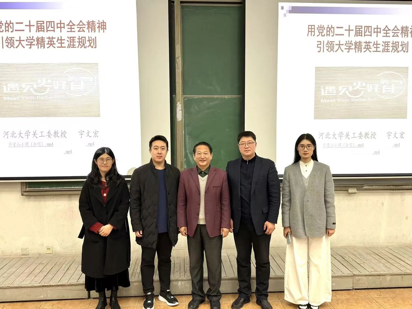 为引导2025级新生积极适应大学生活,迈好人生成长的关键一步,11月13日下午,哲学与社会学学院与法学院在A2二阶报告厅联合举办了主题为“用党的二十届四中全会精神引领大学精英生涯规划”的新生素质提升大讲堂。活动特邀河北大学老教授协会、关心下一代工作委员会常委,河北省思想政治教育研究专家、硕士生导师宇文宏教授作专题报告。两学院辅导员刘怡宏、尹清华、韩明月及2025级全体新生共计260余人参加了活动。讲座由哲学与社会学学院党委副书记王昭主持。