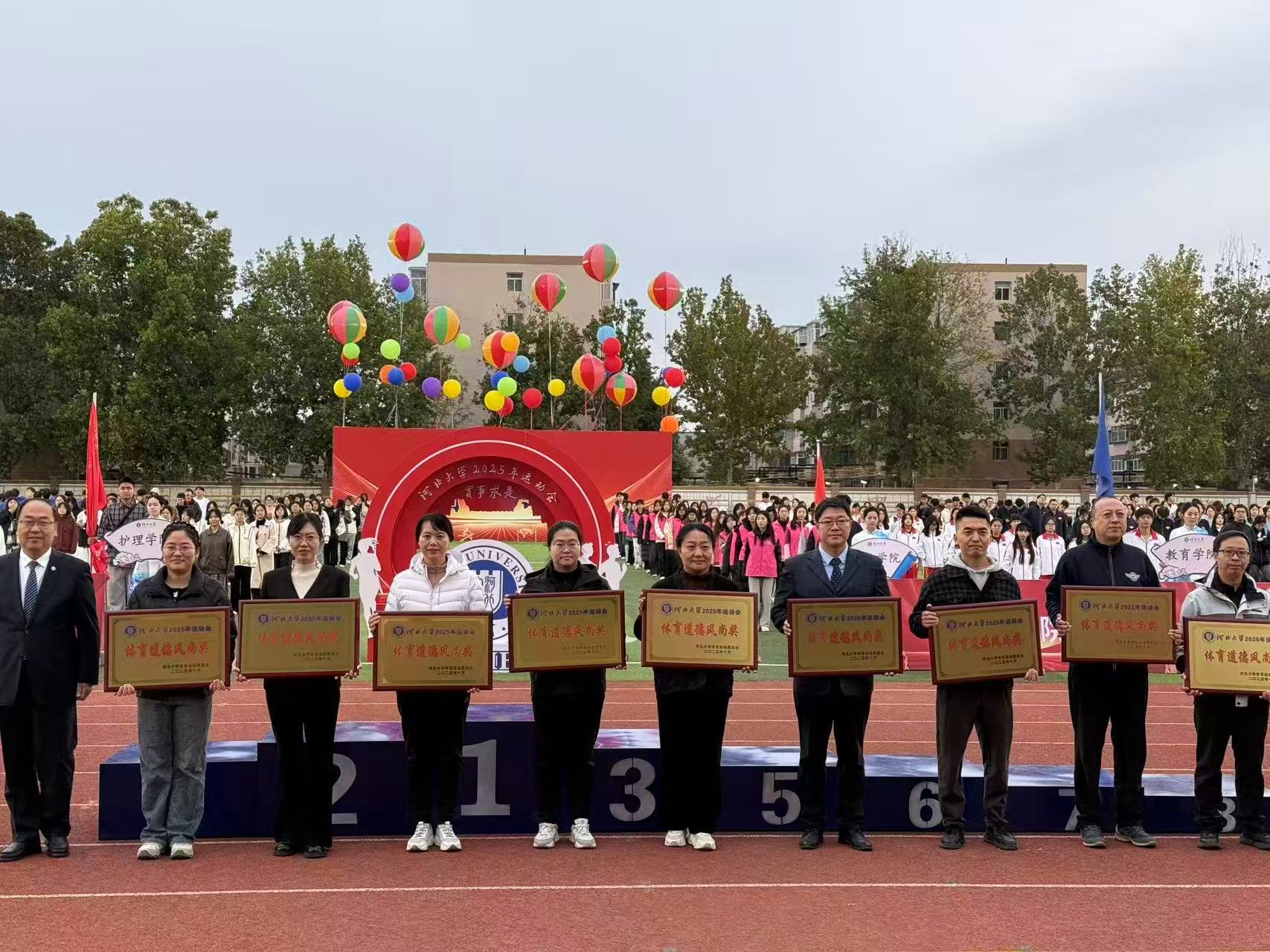 10月17日至18日,河北大学2025年运动会在五四路校区体育中心举行。开幕式上,学院学子以一场融合传统与现代、力与美的团体操盛宴震撼全场;运动会中,学院凭借严禁的组织能力、昂扬的精神风貌和文明的观赛氛围,荣获运动会“突出贡献奖”与“体育道德风尚奖”两项殊荣,成为赛场内外一道亮丽的风景线。