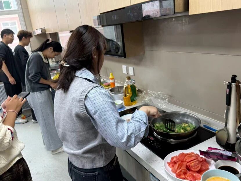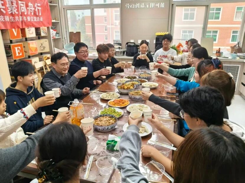 活动中,师生们一同清理食材、庖厨手作、备料成肴,在劳动协作中体验动手乐趣,感受劳动教育的独特价值。餐叙环节,师生边吃边聊,就学业困惑、生涯规划、生活点滴等话题进行了深入而坦诚的交流。张院长在交流中强调,此次活动是学院推动“三全育人”、拉近师生物理与心理距离的重要举措,育人既要在课堂上引导学生探索真理,更要在生活中倾听学生的心声,做学生的引路人、知心人、护航人。他希望通过这类常态化、生活化的交流,拉近师生关系,增强学院合力,让育人工作更接地气、更具温度。