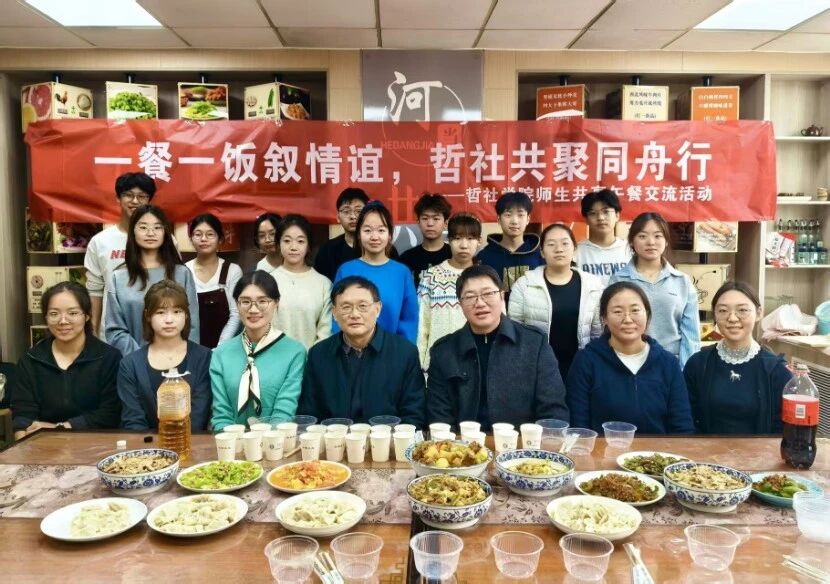 10月31日中午,哲学与社会学学院在七一路校区“河当家”共享厨房成功举办“一餐一饭叙情谊,哲社共聚同舟行”师生共享午餐交流活动。学院院长张燕京,党委副书记王昭,专职辅导员尹清华、张惠娟及学生代表一起以食为媒,共赴一场充满烟火气的暖心之约。